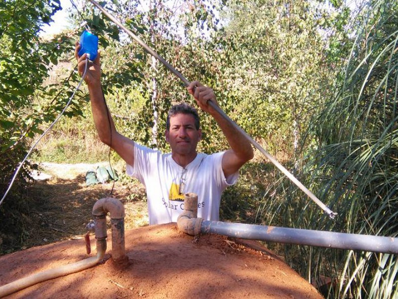 “Grace Kelly” is one of the biodigesters that were built during the Experimental Week in August 2015 at Tamera Solar Village. It is one of Solar CITIES’ signature IBC biodigesters, insulated with a light straw construction with a dual-IBC floating gas holder.